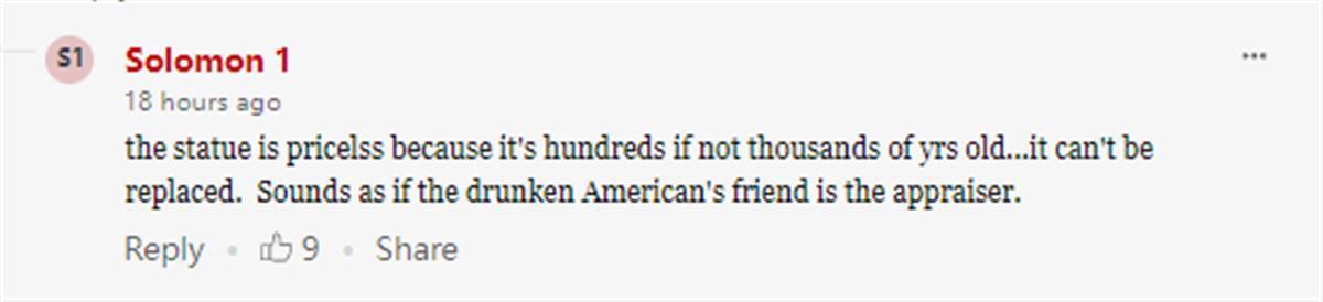此事引发了国际社会的愤怒。美国网友表示,“这座雕像是无价的,因为它有几百年甚至几千年的历史了。它是不可替代的。”中国网友愤怒评论道:“对欧美的治安也太有自信了,居然都没有保护措施……”“为什么撤销盗窃文物指控?”