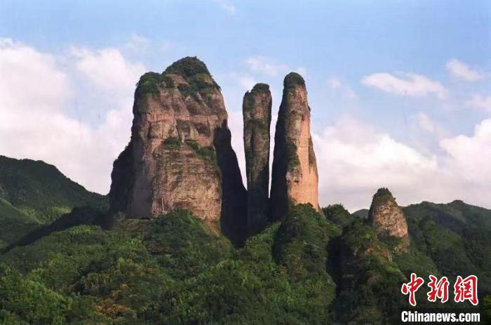 2010年,江郎山与湖南崀山、广东丹霞山等6地“捆绑”申报的“中国丹霞”,被正式列入《世界遗产名录》,成为中国第8个世界自然遗产。这也是浙江首个世界遗产。