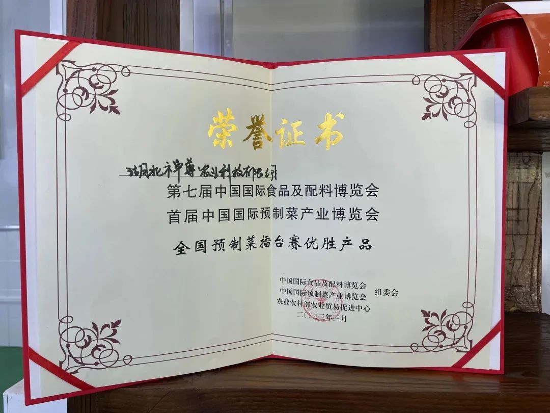 神尊农业从首届中国预制菜产业博览会斩获的擂台赛优胜产品证书