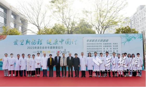 荆楚网(湖北日报网)讯(通讯员 凡云)4月9日一早,荆门市中心医院南院区门诊部门前广场上人头攒动,“爱卫新征程 健康中国行”2023年湖北省老年健康基层行——走进荆门大型公益义诊活动在这里举行。华中科技大学同济医学院附属协和医院党委副书记孙晖教授,湖北省卫健委监察专员岳勇,市卫健委党组成员、公共卫生总师蔡云峰,参加了启动仪式。