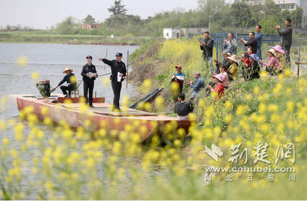荆楚网(湖北日报网)讯 (通讯员 赵平 黄翔) 4月10日,在湖北省沙洋县长湖湿地自然保护区后港水域,沙洋县公安局后港水陆派出所民警以“法治讲堂”的形式,向沿岸村民开展生态保护普法宣讲。