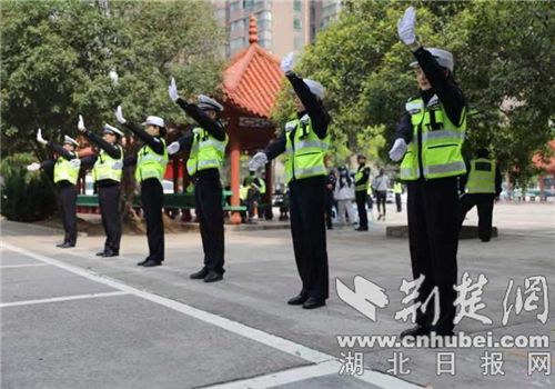 荆楚网(湖北日报网)讯(通讯员 郭蓓蕾)“指挥长同志,荆门交警支队“五小练兵”队列手势操考核全员集合完毕,请指示!”