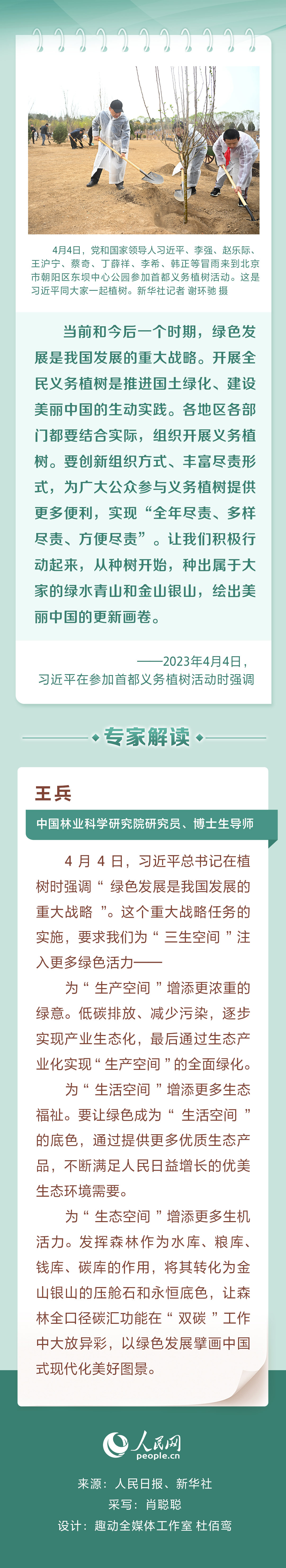 4月4日,中共中央总书记、国家主席、中央军委主席习近平在参加首都义务植树活动时强调,当前和今后一个时期,绿色发展是我国发展的重大战略。人民网邀请专家进行解读。