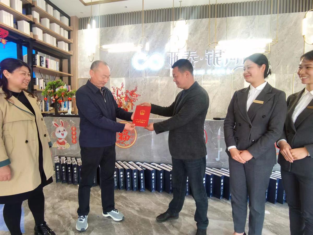 当天,大悟县住房和城乡建设局联合县自然资源和规划局不动产登记中心相关工作人员来到银河湾项目建设现场,为其送证上门,通过实际行动积极解决企业办证需求。
