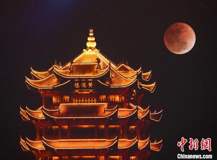 图为夜色中的黄鹤楼耀眼夺目。(资料图片) 中新社记者 张畅 摄