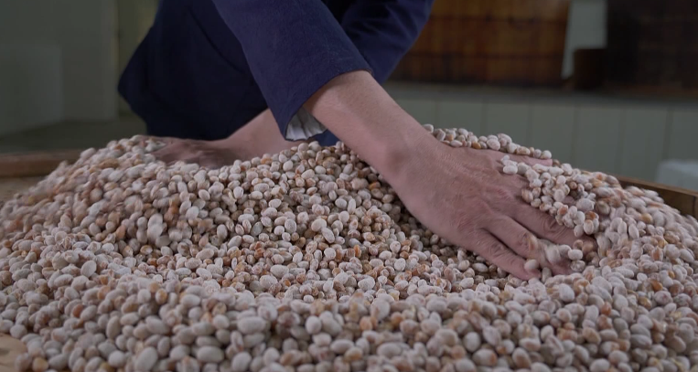 黄滩酱油第五代非遗传承人李佳剑说:“在我们这个地方,基本上家家户户有做酱的习惯,在大人做酱的过程中,感觉很神奇,豆子通过加盐水。然后在太阳里面晒,经过日晒夜露,就变成了一种很甜、很香的调味料,所以从小就有一种兴趣,后来又有机会接触到了制酱行业,公司收购了黄滩酱油,我就比较有兴趣来做这个事业。”