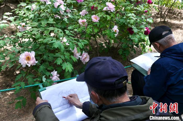 “景山公园的牡丹品种多,像姚黄、赵粉这些品种更容易入画。”14日上午,市民颜承才用画笔记录着眼前的盛放。他告诉记者,自己在春天来景山公园画牡丹已有十余年,今年五一之前,他在闲暇时都会到此赏花写生。
