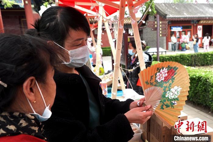 图为牡丹文化季开设的文创特色商品市集。 中新社记者 易海菲 摄
