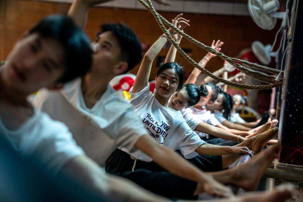 耿马县民族歌舞团演员在练习傣族传统刀舞。新华社记者 胡超 摄
