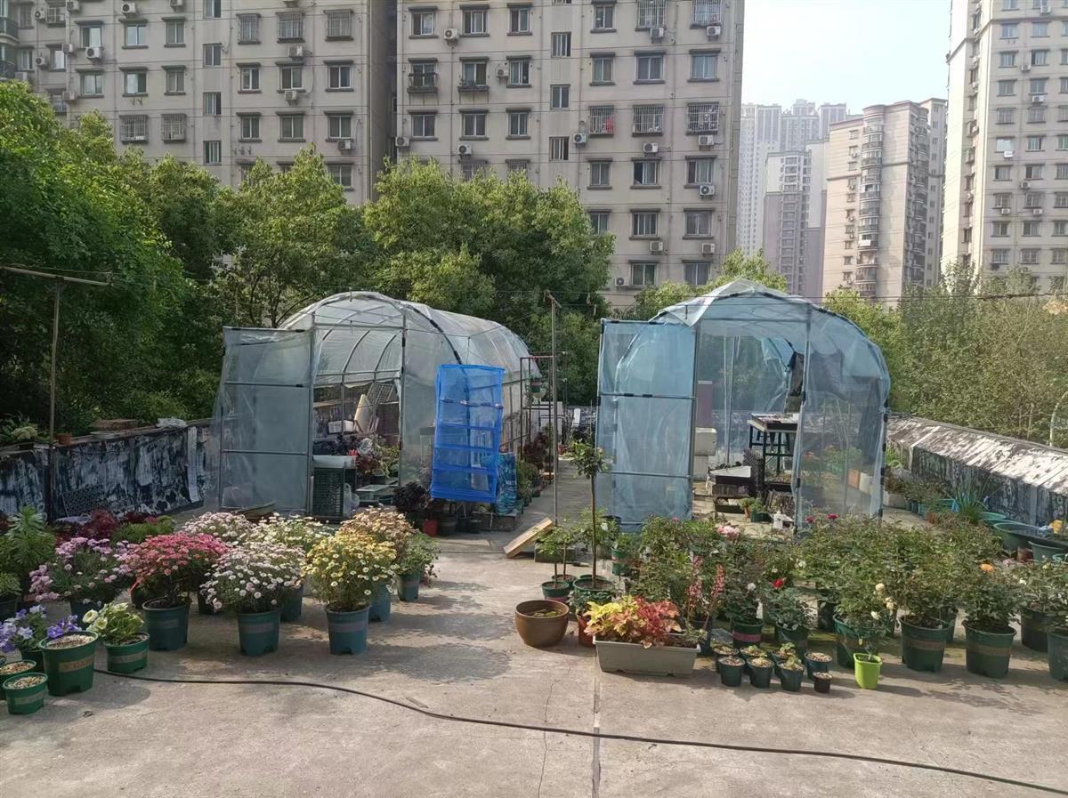 武汉青山区工人村一小区居民在楼顶搭建两个塑料大棚,用来种花。4月12日,该大棚被定性为乱搭乱建,而被执法人员拆除。