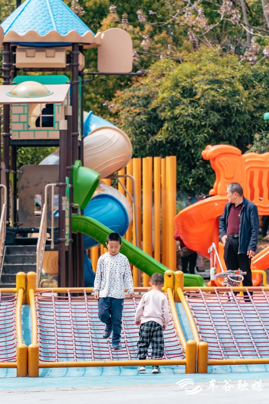 大人在这活动筋骨,孩子们也有地玩乐,再一起散步到江滩。