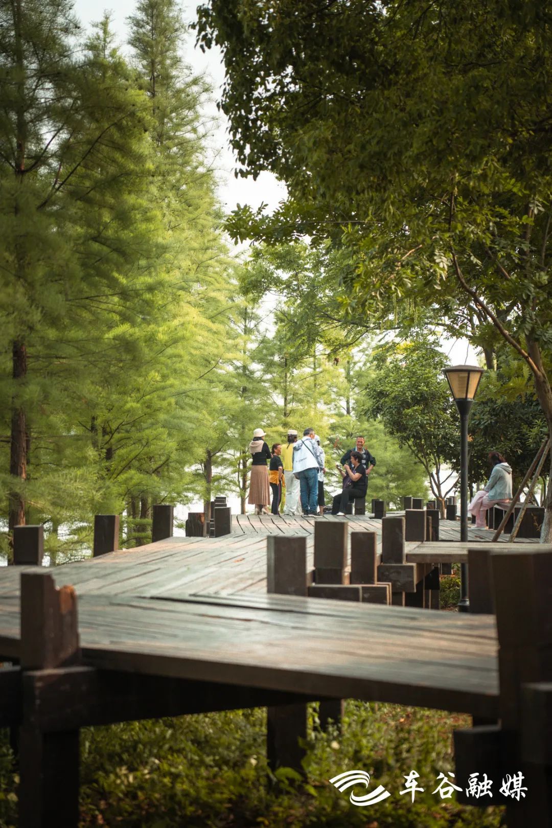 信步草木间,在凉亭里稍作休整后下山,对面就是纱帽广场。广场里的小型绿道圈住一汪湖水,沿着湖边赏花、游园,一下把人拉入了烟火气之中。