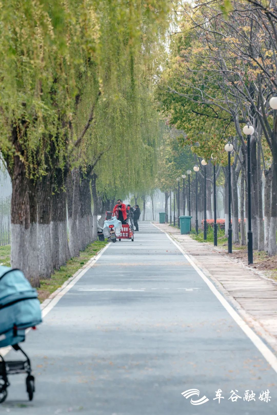 河岸绿意盎然、水汽茵茵,绿道依河蜿蜒,西岸延伸了10公里左右,从绿地城协子河南岛直至碧桂园学校桥。