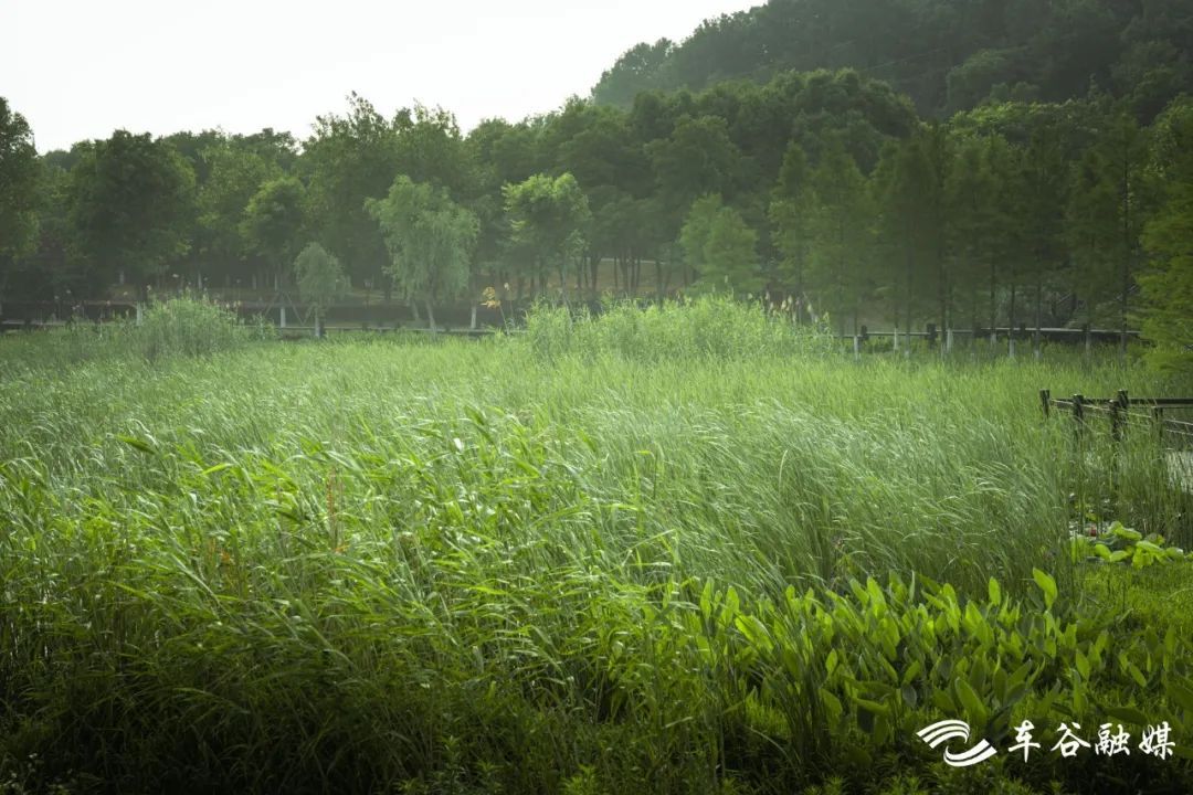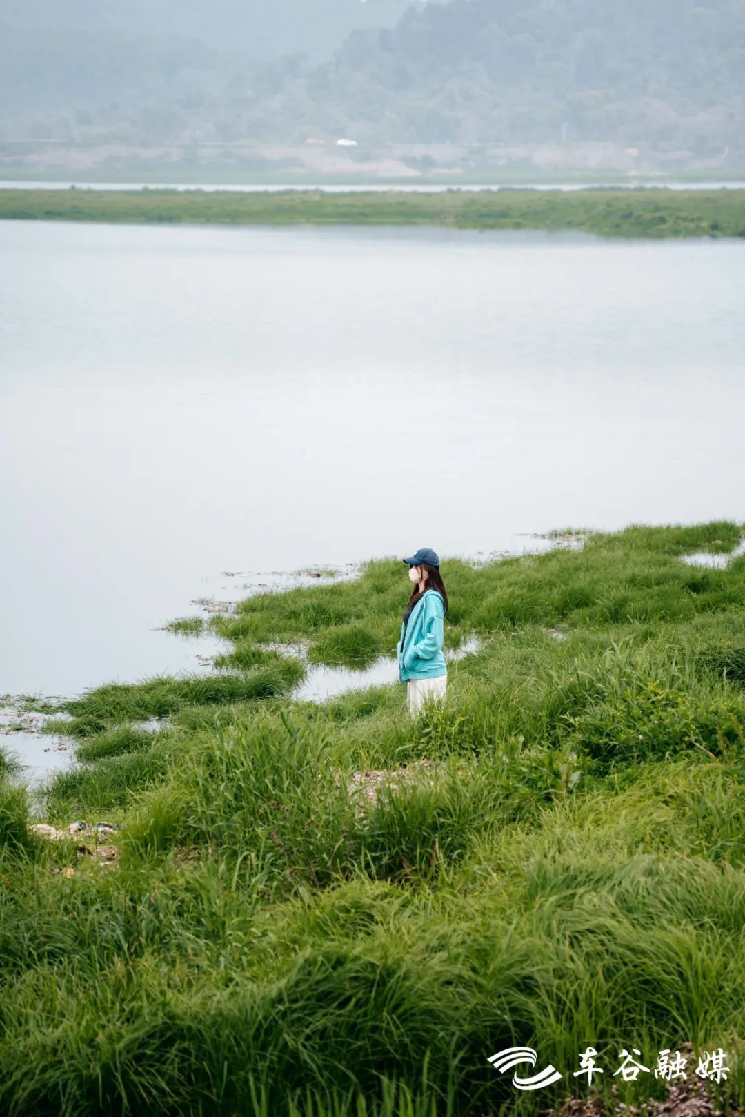 坡度不大,一路聊天作伴,轻轻松松就能走完全程。途径九曲湾湿地,木质栈道从森林里延伸至大片草海,连接水岸的波光潋滟。漫步于此,已是心驰神往。