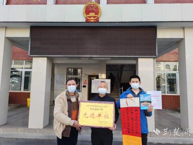 张新国领取孝感市老促会颁发的革命老区工作先进单位奖牌。通讯员 供图