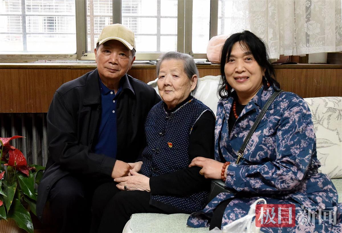 开国上将陈士榘之子陈人俊(左一)看望94岁高龄的抗日巾帼英雄董淑珍妈妈(中)