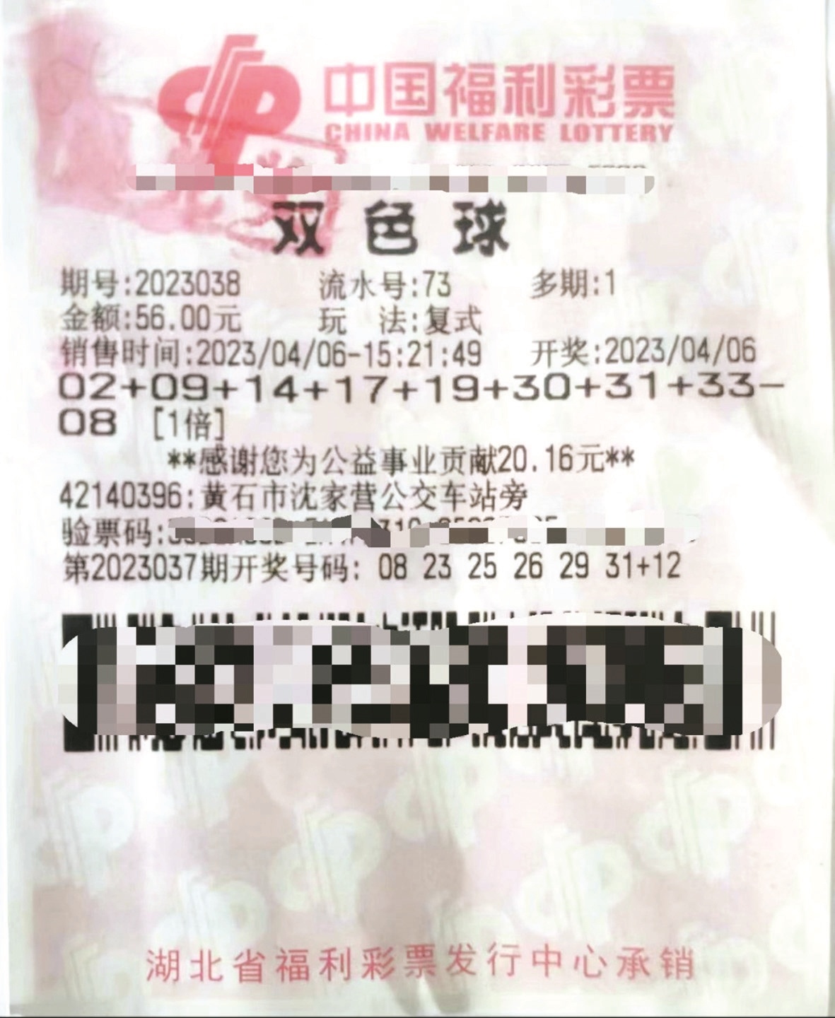 4月6日下午,何先生外出办事,路过一家福彩站点,就照例投注了自己的守号。在当晚查看开奖信息时,何先生发现自己的守号命中全部号码,获得了双色球一等奖。