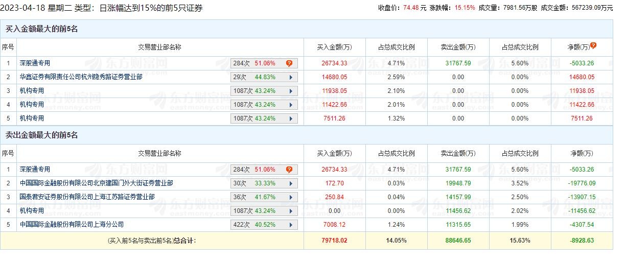 中国经济网北京4月18日讯 中际旭创(300308.SZ)股价截至今日收盘报74.48元,涨幅15.15%。