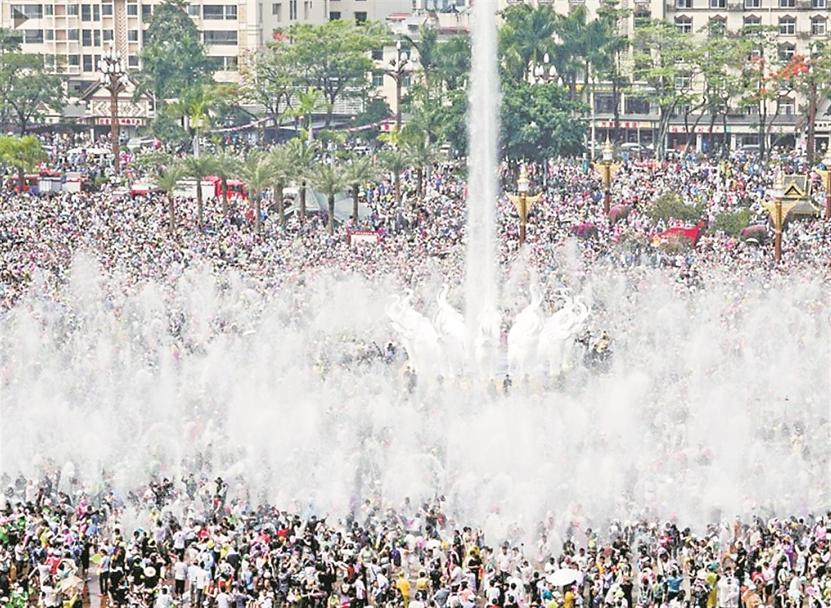 4月15日上午11时整,云南西双版纳傣族自治州泼水节开泼。时隔三年,西双版纳州再次开启万人泼水狂欢模式,当地居民与来自四面八方的游客一起,共同欢度傣族人民最隆重、最盛大的泼水节。