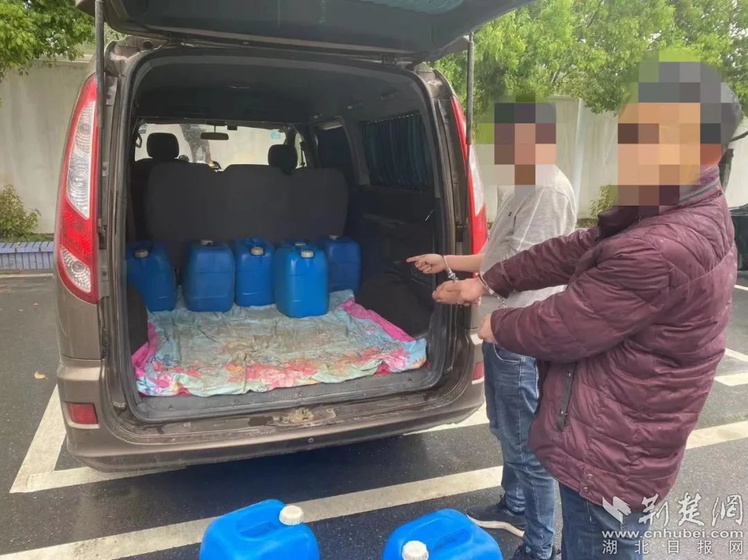 4月13日凌晨2时许,嫌疑人魏某在孝昌作案后返回到广水家中。眼见抓捕时机成熟,蹲守在此的民警一举将其抓获,现场查扣作案车辆1台,查获大量当晚盗窃的柴油。随后,民警顺藤摸瓜,连夜将其同伙曹某兴抓获,并在广水一村庄内找到储油仓库,仓库内储存了大量偷来的柴油。