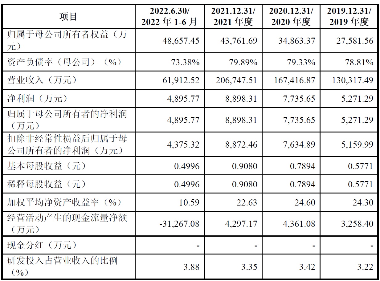 2019年至2022年1-6月,恒尚节能的营业收入分别为130,317.49万元、167,416.87万元、206,747.51万元和61,912.52万元;净利润/归属于母公司股东的净利润分别为5,271.29万元、7,735.65万元、8,898.31万元和4,895.77万元;扣除非经常损益后归属于母公司所有者的净利润分别为5,159.99万元、7,634.89万元、8,872.46万元和4,375.32万元。