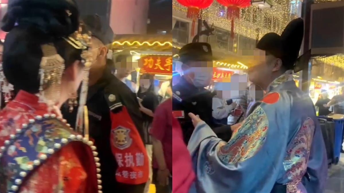 经过步行街后,他们欲进入大众巷新光夜市,又被保安拦住禁止进入,双方就吵了起来。“汉服应该被认可和推广,不应该被另眼相看。”陈女士说,后来现场来了一名夜市运营方的工作人员,沟通后才让他们进入。他们在夜市街区合了个影,买了饮料,逛了半小时就离开了。