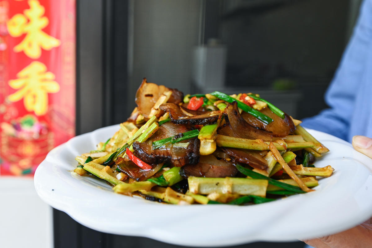 春笋有很多种吃法,在家乡湖北南漳人的餐桌上,一道春笋,无论炒、炖、焖、煨,皆成美味。其中,最常见的便是竹笋炒腊肉。脆嫩清香的竹笋和色泽红亮的咸香腊肉是一道绝佳的搭配,两种食材经高温爆炒后,各显神通,腊肉肥而不腻,春笋脆香爽口,是下饭的绝佳配菜。(湖北日报客户端 通讯员 南融媒 张萍 杨丽 陈梦露 鲁宏)