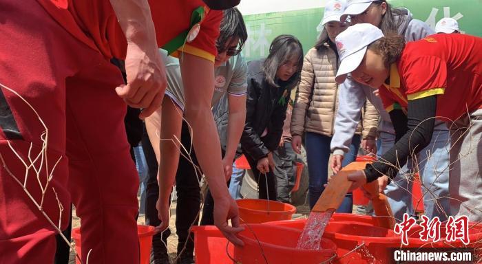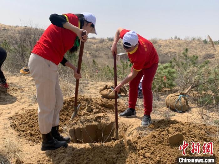 活动在鄂尔多斯市恩格贝生态示范区进行。扛铁锹、搬树苗、挖树坑、浇水……当日现场一派热火朝天,留学生们干得不亦乐乎。