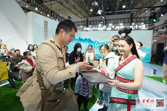 借助第二届中国(武汉)文化旅游博览会这个全国大舞台推介十堰,十堰馆的推介团队及全体工作人员,通过紧密配合将十堰丰富、优质的文旅资源推介给了现场的观众。十堰的山水、汽车、森林植被、历史文化、地方美食、便捷交通。每一地、每一景,事关十堰文旅发展的每一个环节,现场的推介都格外用心。