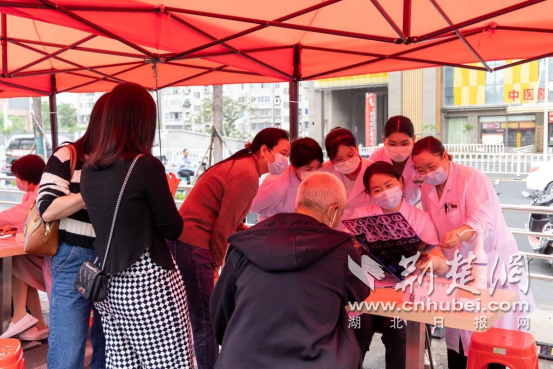 荆楚网(湖北日报网)讯(通讯员 程戎)4月15至21日是第29个全国肿瘤防治宣传周,旨在高质量推动健康中国癌症防治专项行动,提高全社会癌症防控意识,落实湖北省“323攻坚行动。4月18日,荆门市中医医院肿瘤血液科以“癌症防治 全面行动——全人群 全周期 全社会”为主题,在门诊大楼广场举办肿瘤疾病义诊活动。