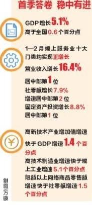 “面对挑战和压力,湖北一季度经济增长快于上年增速,好于全国同期,在GDP超五万亿的经济大省中处在领先位置,符合预期,殊为不易。”武汉大学经济与管理学院教授邹薇说。