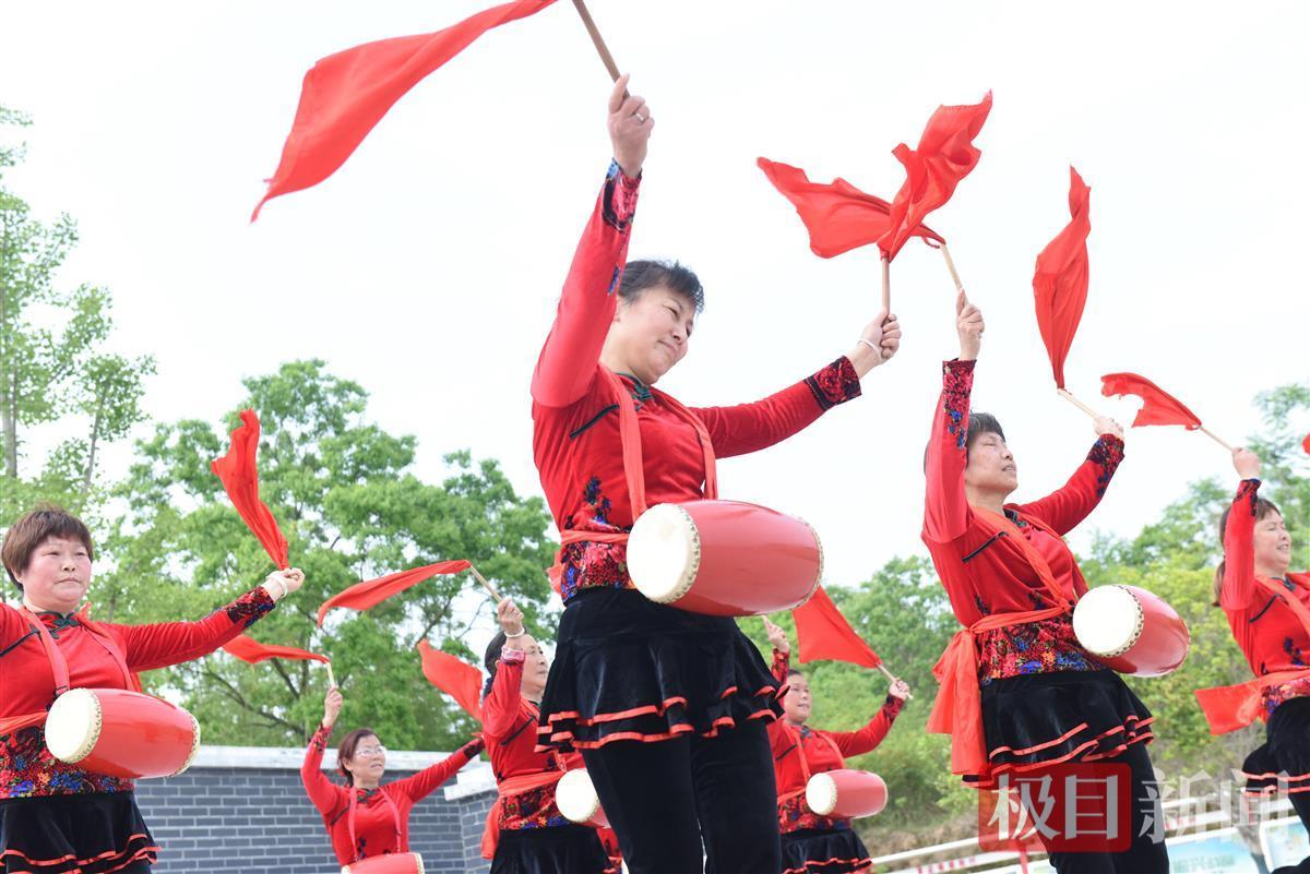 空余时间,大悟县夏店镇朝阳村村民欢快打着腰鼓。通讯员李文勇供图