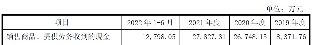 上述同期,公司销售商品、提供劳务收到的现金分别为8,371.76万元、26,748.15万元、27,827.31万元和12,798.05万元;经营活动产生的现金流量净额分别为460.41万元、7,040.41万元、-79.42万元和-1,550.94万元。