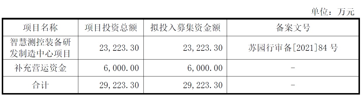 荣旗科技本次发行募集资金总额为95,887.92万元,扣除发行费用后募集资金净额为85,860.09万元,公司最终募集资金净额较原计划多56,636.79万元。荣旗科技于2023年4月19日披露的招股说明书显示,公司拟募集资金29,223.30万元,用于智慧测控装备研发制造中心项目、补充营运资金。