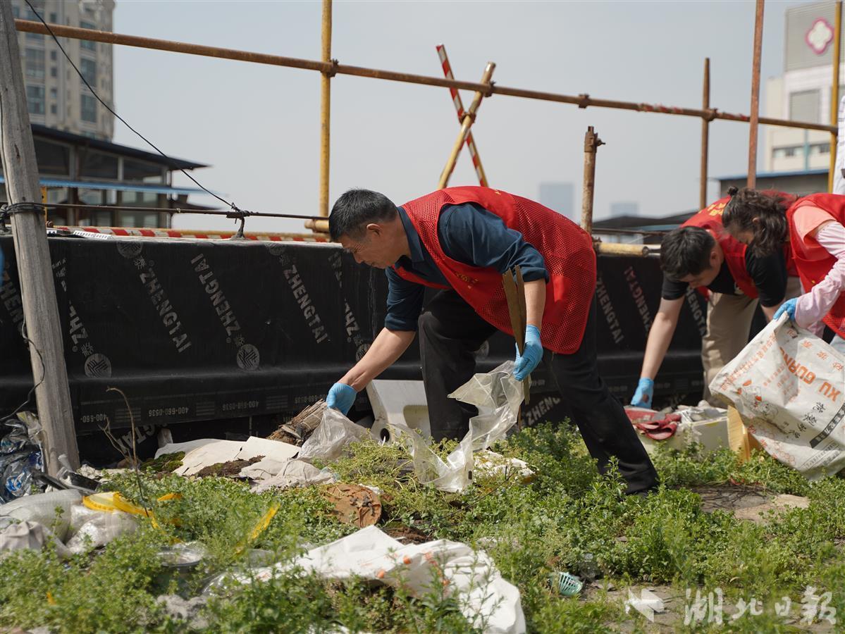 在六角亭街道,该街领导、机关干部、下沉党组织党员、文明单位志愿者前往各包保、对口社区开展志愿服务活动,志愿服务活动项目:清理小区楼道堆积杂物、花坛卫生死角,铲除楼栋“牛皮癣”及墙面刷白、有序规范共享单车等。武汉市第一医院、武汉市交管局、武汉市政机械化公司、硚口区残联、武汉市精神卫生中心、崇仁第二小学、武汉64中顺道校区、武汉普瑞眼科医院、社区卫生服务中心等文明单位志愿者积极到社区参与活动;武汉市审计局、武汉非遗文化产业(集团)有限公司、江汉关博物馆、武汉市商务局等下沉党组织党员主动到社区报到,充分发挥组织协调和模范带头作用,调动广大志愿者、居民群众参与“武汉以我为荣·小行大爱”清洁家园活动积极性,形成人人动手、人人参与的良好氛围,辖区绿化带、小区楼道、居民公共活动区域得到有效改善,整体环境焕然一新。
