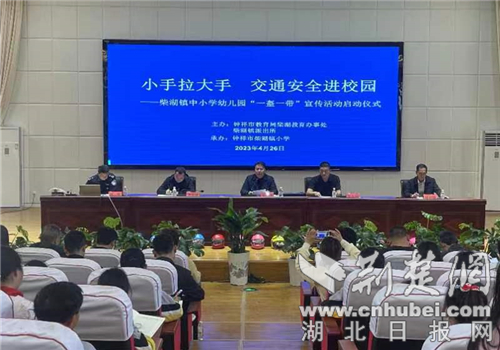 荆楚网(湖北日报网)讯(通讯员 刘俊杰)“一盔一带”校园先行,让安全从“头”开始。为进一步做好学生交通安全宣传教育工作,增强师生的交通安全意识和自我保护意识,筑牢校园道路交通安全防线,4月26日上午,钟祥市公安局柴湖派出所在柴湖镇小学开展了“一盔一带,安全常在”交通安全主题宣传活动启动仪式。