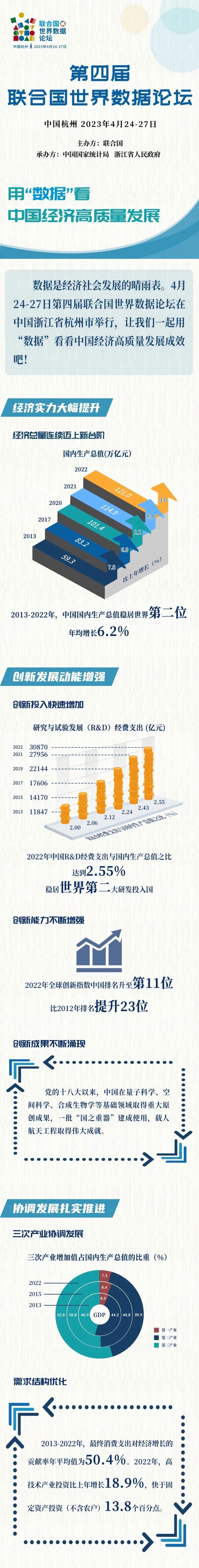 人民网北京4月26日电(记者杨曦)数据是经济发展的晴雨表,2023年4月24—27日,第四届联合国世界数据论坛在中国杭州举行。论坛举办期间,中国积极分享在推动落实可持续发展方面的经验与做法。让我们一起用“数据”看中国经济高质量发展。