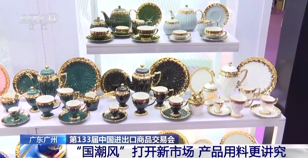 总台记者 张浩:通过这几天逛展,我发现,许多参展商带来的“国潮风”产品,深受欧美及中东采购商的欢迎。像日用陶瓷、餐厨用具等产品,有许多地方都融入了中国文化元素。同时,这些产品的颜值与实用功能兼备,因此,“国潮风”产品也成为本届广交会越来越多企业设计的新方向。另外,在绿色环保方面,比如儿童玩具类产品、园林类产品等,许多厂商在用料方面都更为考究,其产品也在向绿色、环保方面转型,力求让消费者用得安心、买得放心。