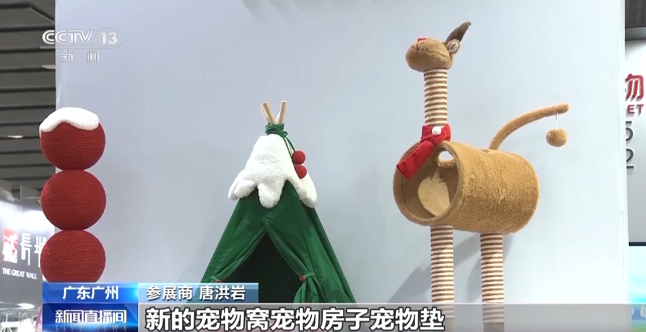 参展商 唐洪岩:开发了一些新的宠物用的东西,客人也是很喜欢。我们交易会也展示了新的宠物窝、宠物房子、宠物垫,我相信市场份额会越来越大。