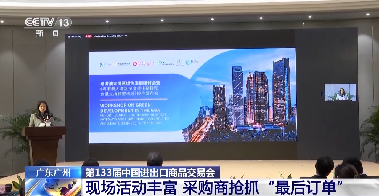 总台记者 张浩:今天,广交会二期现场的活动同样很丰富,其中就有一场刚刚结束的“粤港澳大湾区绿色发展研讨会”。本次研讨会还发布了“粤港澳大湾区深度减排路径和金融支持转型机遇”项目的研究成果报告,并邀请了国内外能源、金融、制造业、交通运输等多领域的专家和资深从业人员,为粤港澳大湾区在低碳高质量发展等方面建言献策。除此之外,今天在展会D区,也就是餐厨用具展区还将继续进行新品展示及推广活动等,吸引众多境内外采购商驻足观看与深度了解。