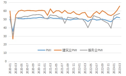 图4:2020-2023年3月中国的PMI指数变化情况数据。来源:国家统计局、WIND
