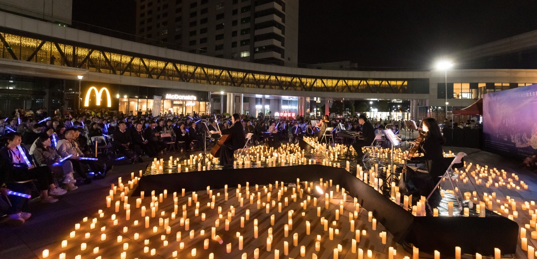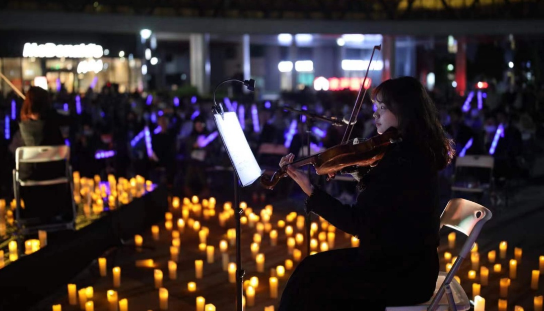 4月26日晚,在光谷智能制造产业园武汉华星光电公司,一场“华语经典曲目•烛光音乐会专场”举行,艺术家们演奏键盘、大提琴、中提琴和小提琴等乐器,带来了《一千年以后》《如愿》《大鱼》《这世界这么多人》《后来》《突然好想你》等经典曲目。
