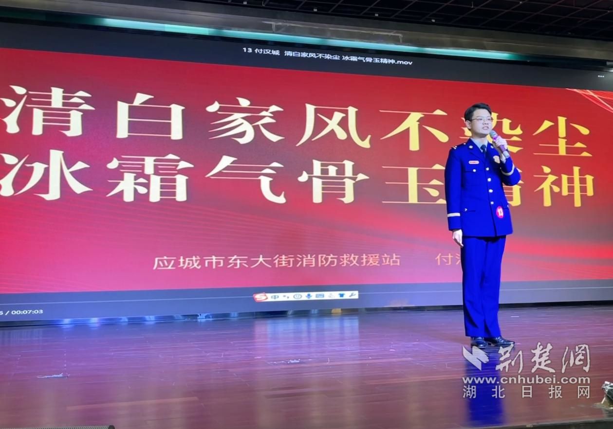 决赛现场,通过初赛选拔的15名选手,围绕各自的成长工作经历,以不同的角度和形式分享了对清廉的认知与坚守。来自应城市税务局的高晓玮以《党员之家—三代人的传承》讲述了一家三代向党,赓续清正廉洁初心的党员故事;应城市消防救援站的付汉城以《清白家风不染尘,冰霜气骨玉精神》为题分享了自己陪军人父亲赴汶川地震灾区救援,并返还灾区人民偷偷塞进父亲口袋“感谢金”的家风传承故事……参赛的选手中有老师、消防员、记者,还有刚踏入社会的年轻人,他们用不同的身份诠释了自己对廉洁工作的理解,让清廉文化深入“人心”、更接“地气”。