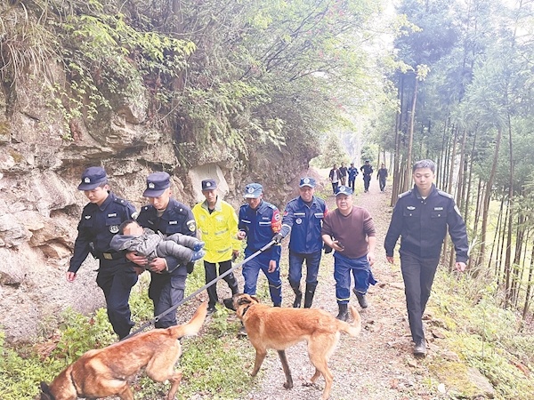 25日8时许,利川市公安局交警大队、刑侦大队、特警大队派来20余名警力增援,并联系蓝天救援队带2只搜救犬进山。