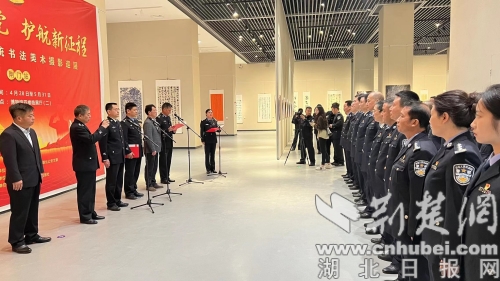荆楚网(湖北日报网)讯(通讯员 吴烁硕)4月28日,湖北省公安厅政治部、湖北公安文联举办的“公安心向党 护航新征程”全省公安系统书法美术摄影巡展在荆门市博物馆拉开帷幕。