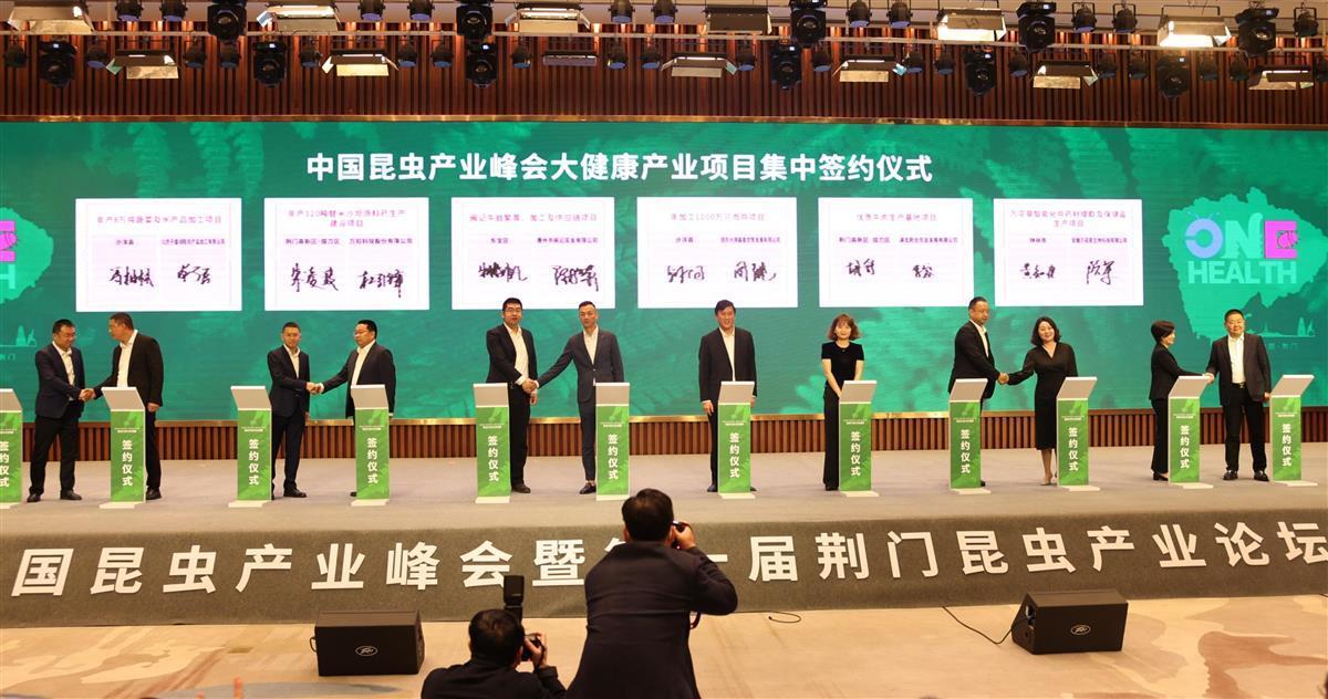 当天,荆门市政府与中国昆虫学会签订了战略框架协议,现场签约昆虫产业项目5个,大健康产业项目12个,总投资56亿多元。如今,昆虫产业在大健康领域的影响力正在逐步扩大。涉及人体健康方面,昆虫或昆虫分泌物、代谢物已入药和保健品,可以防病、治病,如源于美洲大蠊的康复新液、久负盛名的冬虫夏草、蜂王浆等;涉及环境健康方面,昆虫能处理有机废弃物,用于改善优化人居环境,如黑水虻处理餐厨垃圾;涉及动物健康方面,昆虫可取代鱼粉,用于制作家禽水产养殖饲料;涉及文化健康方面,一批以昆虫为主题的图书、公园、夏令营、科考营、博物馆等科普内容和基地,正发挥积极作用,寓教于乐,科普宣传,开阔视野,增长知识。