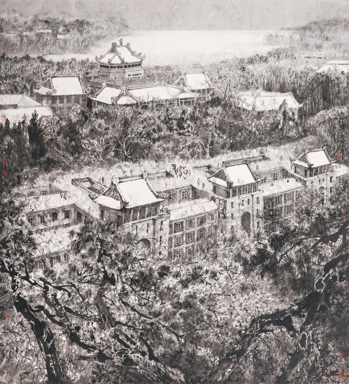 樊枫 《珞珈雪》 纸本水墨 2023年