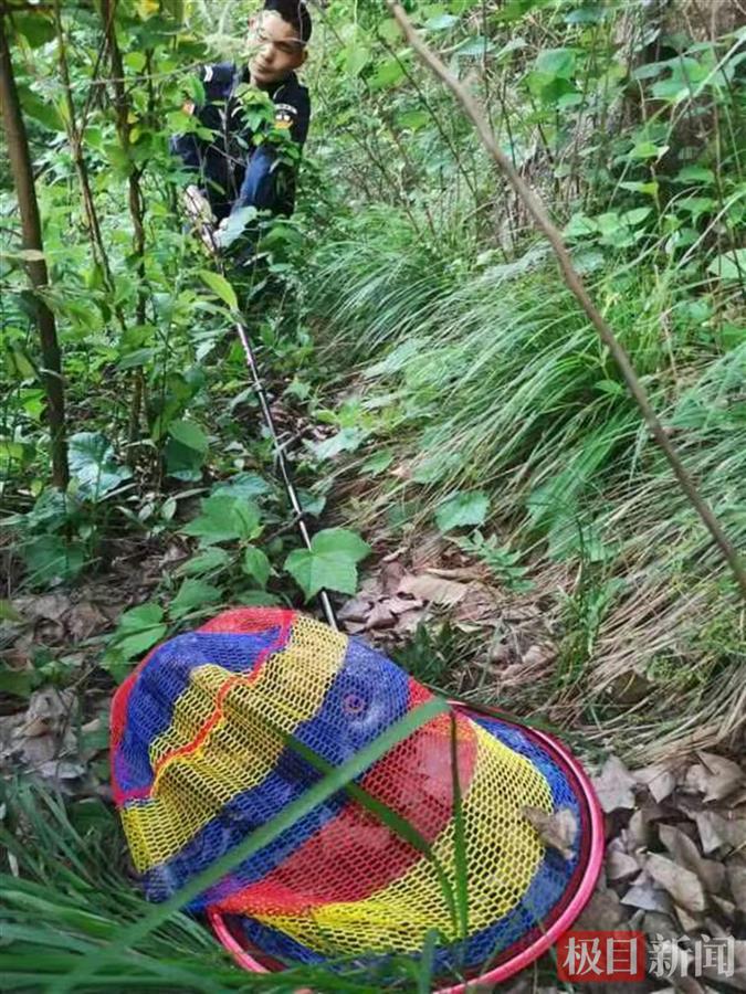 当民警靠近准备救助时,大鸟受惊,踉踉跄跄地飞起来,又很快降落到附近的山林。既然属于国家保护动物,而且已受伤,那就不能弃置不管!民警迅速追赶到附近山林中,展开地毯式搜索,终于找到受伤大鸟,民警向村民借来钓鱼抄网,成功抓住受伤大鸟。