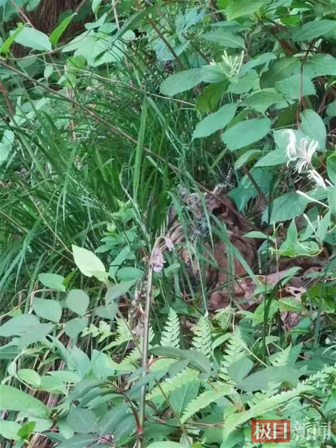 民警发现时,它已受伤,躲在草丛中面露惊恐之色。