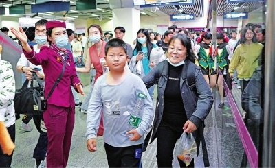 “‘五一’假期,车站客流特点非常明显,中午开始到傍晚客流以出站为主,晚上8时过后3小时以进站为主,并呈快速增长趋势。”文冯婕介绍,到了晚上,车站按照既定预案,增加进站通道、开设无包快检通道、调整电梯方向,全站所有人员分布在站厅、站台引导乘客分散候车,多举措满足乘客快速乘上车。